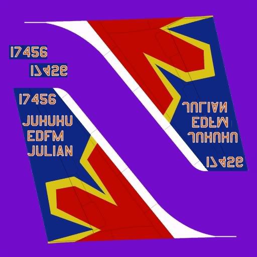 für die rechte Seite muss das Heckleitwerk einmal vertikal gespiegelt werden, damit dann auf dem fertigen Repaint alles stimmt. Das geht auch mit Paint wunderbar. Ich hoffe, ihr seht es nicht als Schleichwerbung, wenn ich ein Heckleitwerk einer VA als Beispiel zeige, aber zum einen ist das das einzige Repaint für den iFDG-Bus von mir und zum anderen wird sehr deutlich, wie die Textur gedreht wurde: http://img.photobucket.com/albums/v4...S/5913f433.jpg |