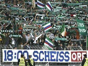 TV-Groteske in der Südstadt: Weil der ORF ein Protest-Transparent ("18:00 Uhr - Scheiss ORF") der Rapid-Fans nicht ins Bild rücken will, liefert er eine verstümmelte Live-Übertragung.