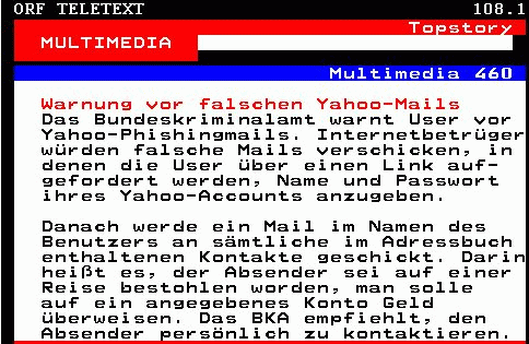 ![]() Na ja, wer heute noch auf einer Seite, die er selbst mit einem E-maillink aufgerufen hat, Benutzernamen und Passwörter eingibt, dem kann sowieso keiner mehr helfen, da fällt mir nur das alte "S.S.K.M." ein.