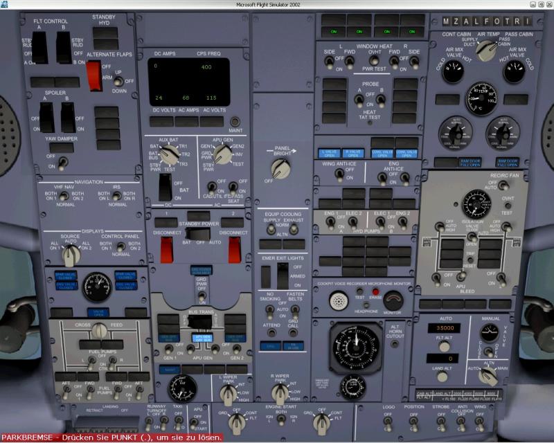 ![]() Also der Switch ist bei mir immer Auto. Wenn ich ihn auf off stelle, geht sehr viel aus... Das Panel bleibt dunkel. Hab' hier mal einen Shot vom Overhead gemacht und vom Panel...