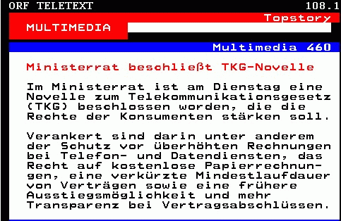 Die Mindestlaufdauer der Erstverträge wird künftig auf höchstens 24 Monate begrenzt. Zudem muss jeder Betreiber zumindest einen Vertrag anbieten, der auf maximal zwölf Monate beschränkt ist. Kunden sollen weiters zwischen einer elektronischen und einer kostenlosen Papierrechnung wählen können. Für Rechnungen gibt es künftig eine einheitliche Einspruchsfrist von drei Monaten, derzeit gibt es keine gesetzliche Regelung für Mindestfristen. (APA)